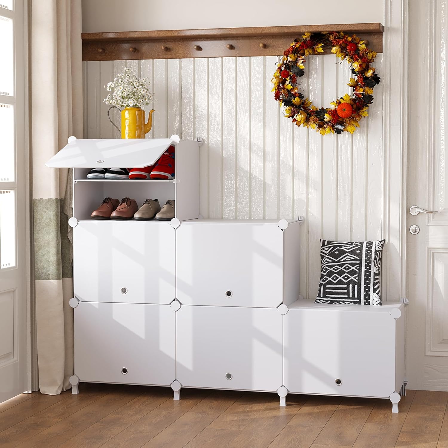AWTATOS Shoe Rack, 6 Tier Shoe Storage Cabinet with Door, 32 Pair Shoe Organizer Shelves for Closet Hallway Bedroom Entryway, White