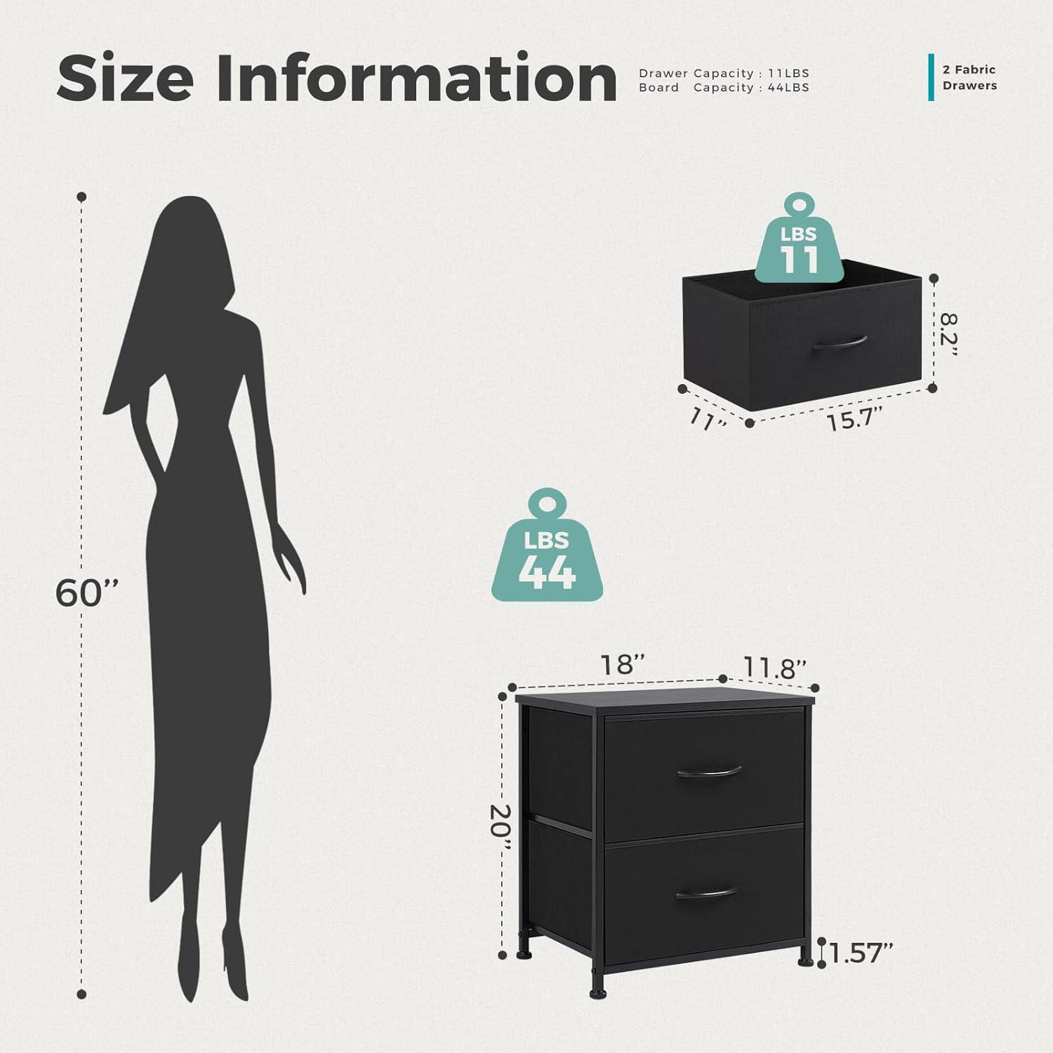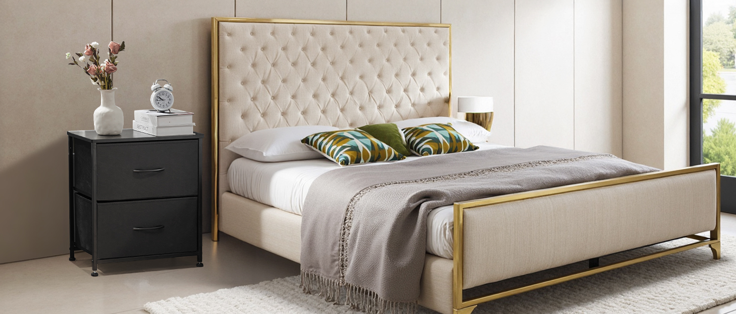 DUMOS Nightstand Small Dresser with 2 Fabric Drawers Side Tables Bedroom End Table Bedside Storage Furniture for 20 inch Tall Night Stand for Entryway, College Dorm, Classic Black