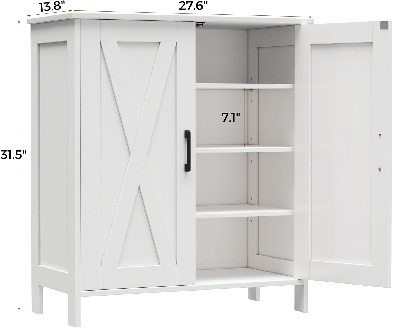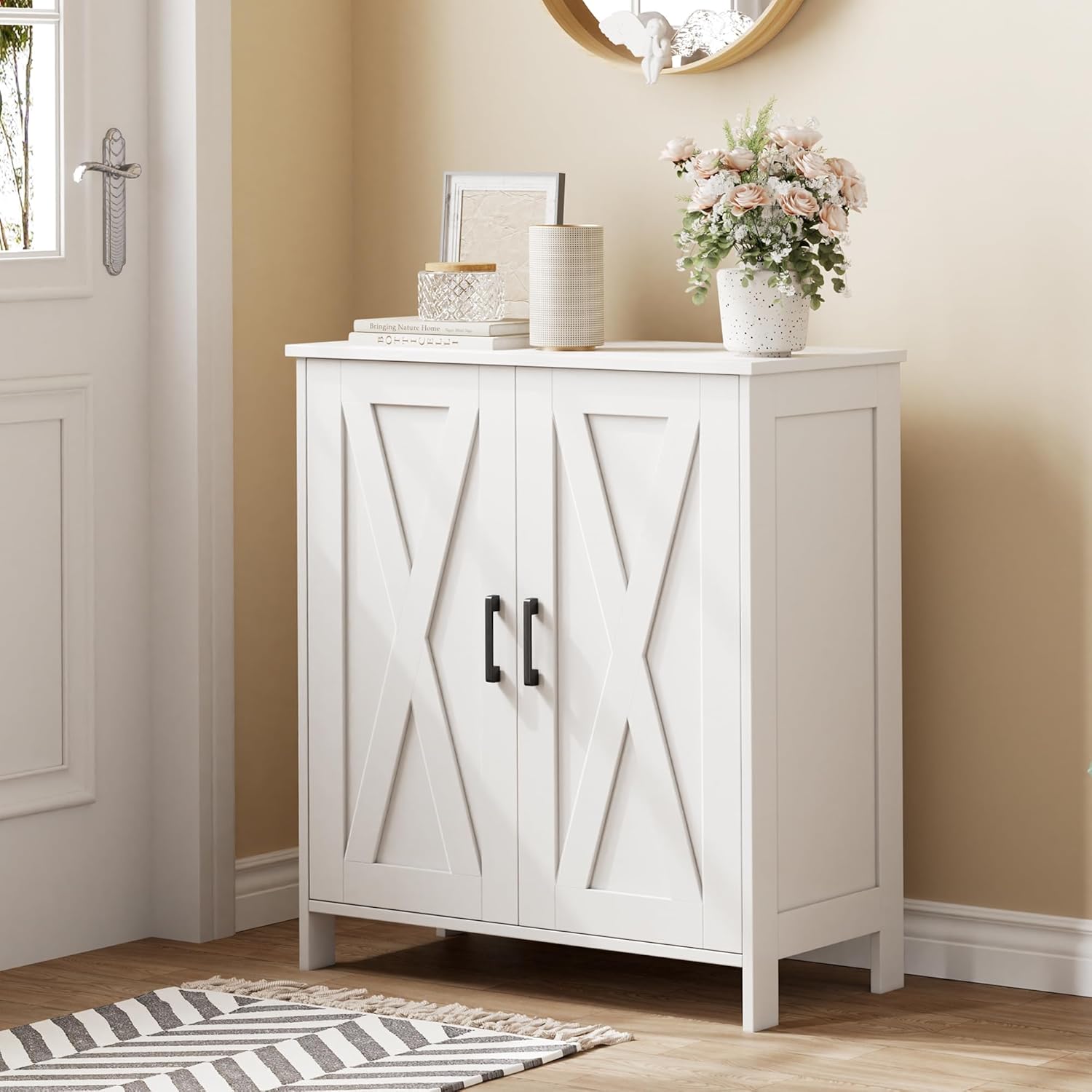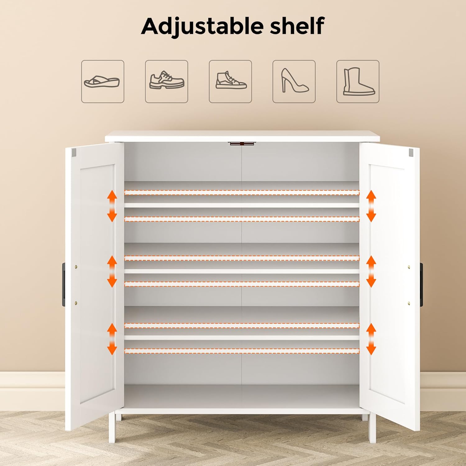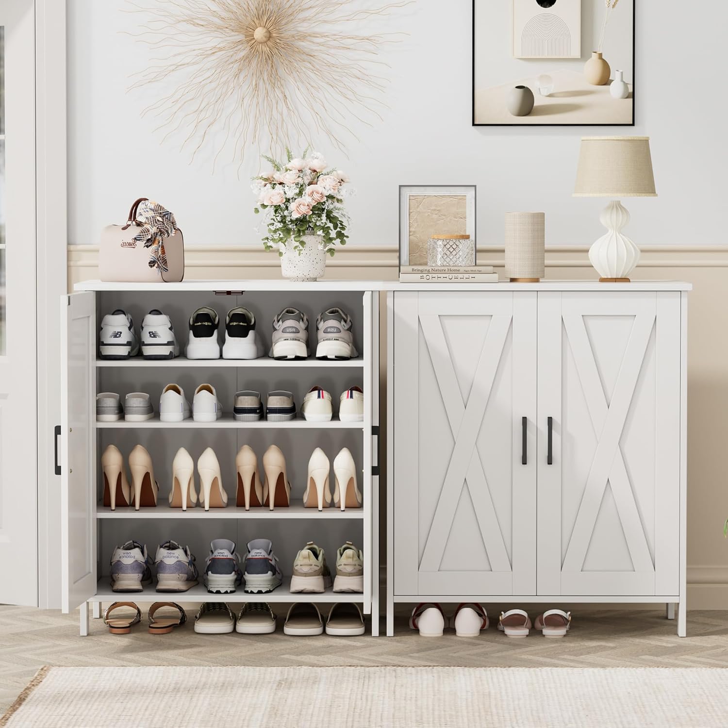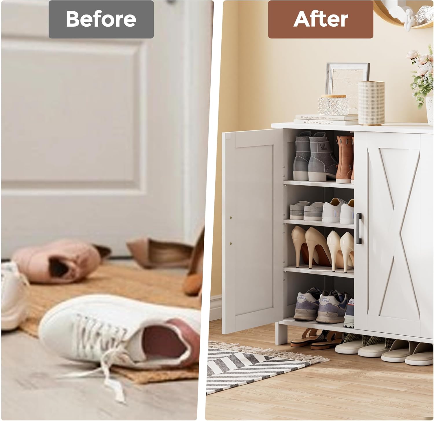 Farmhouse Shoe Cabinet with 2 Barn Doors & Wood Legs, 5-Tier Shoe Storage Cabinet with 3 Adjustable Shelves, Tall Shoe Rack Organizer for Closet, Shoe Organizer for Entryway, Hallway, White