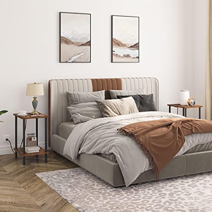 HOOBRO Side Table with Charging Station, End Table with USB Ports and Outlet, Nightstand with 2-Layer Storage Shelves for Small Spaces, Living Room, Bedroom, Stable Frame, Rustic Brown BF09UBZ01