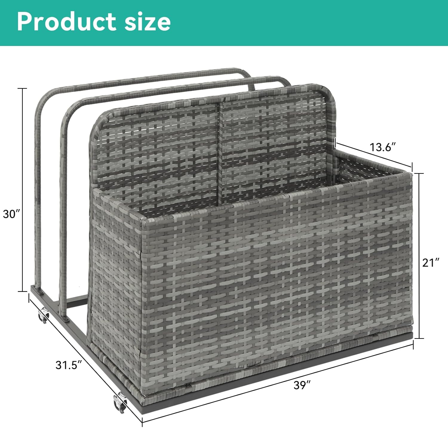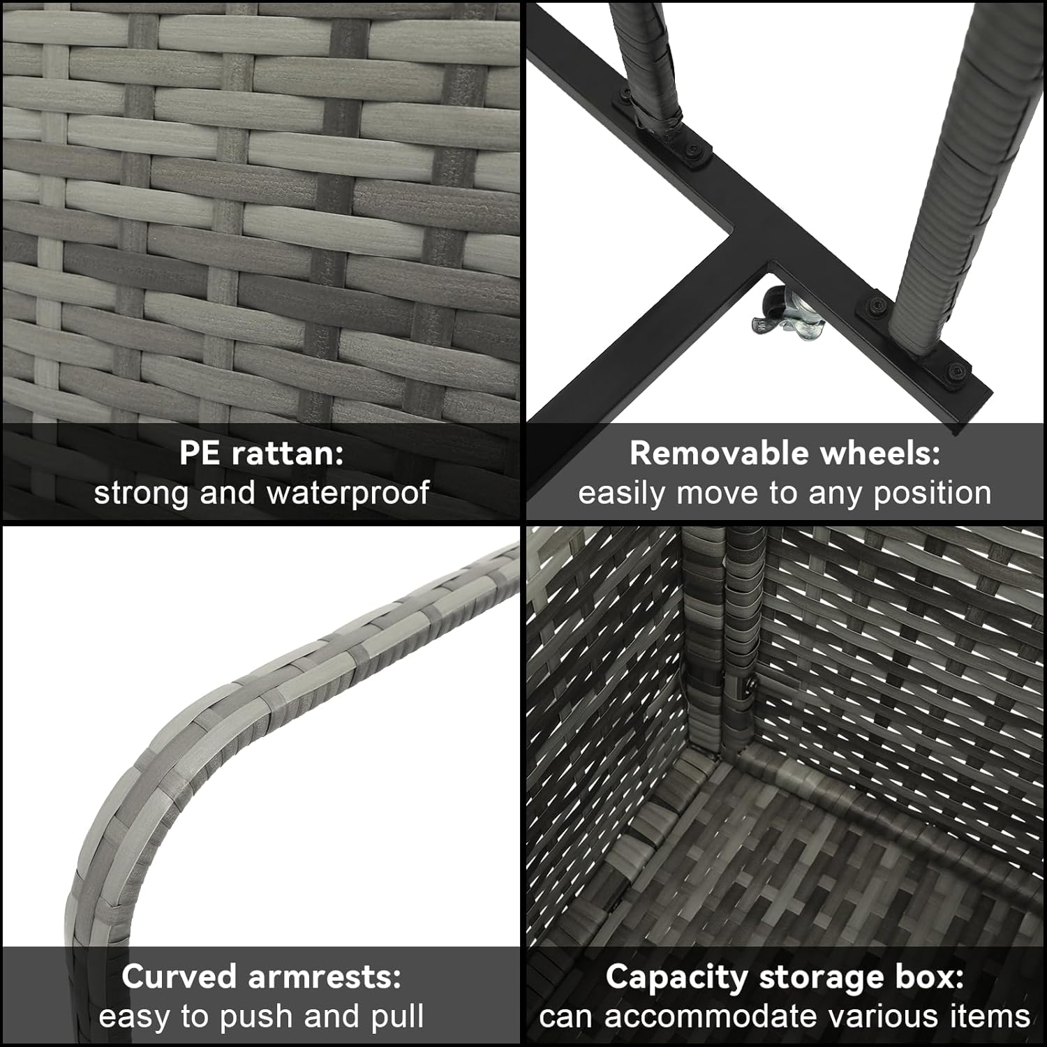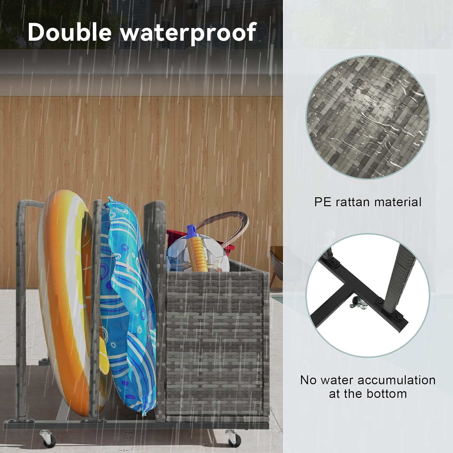 Pool Float Storage Box Outdoor Rolling Poolside Storage Basket Organizer for Patio PE Rattan Pool Caddy with Wheels for Cushions, Floaties, Noodles, Life Vests, Beach Balls, Toys