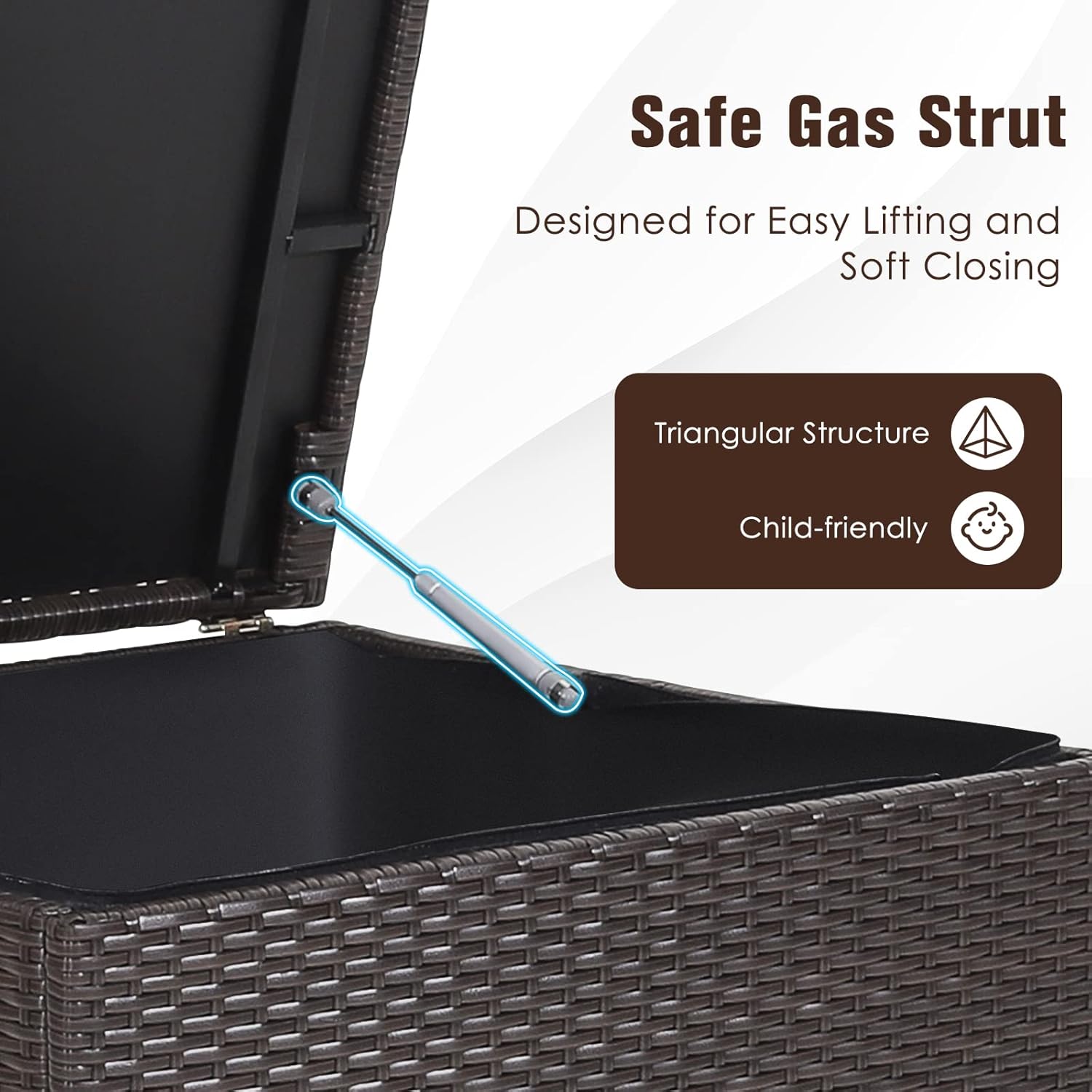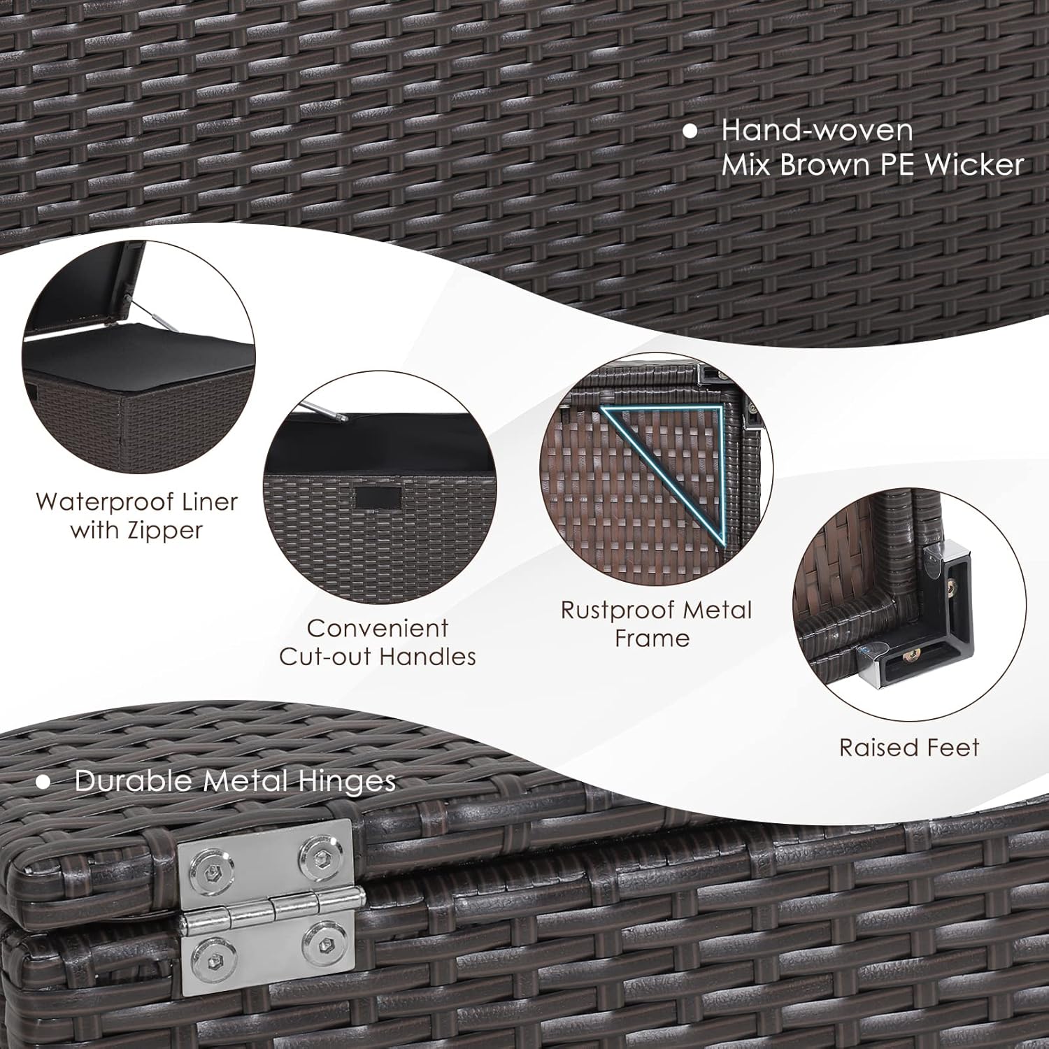 RELAX4LIFE Outdoor Storage Box 72-Gallon - Outside Wicker Storage Bin with Waterproof Zippered Liner, Gas Strut, Package Delivery Boxes for Outside, Accessories, Garden Tools Storage Deck Box