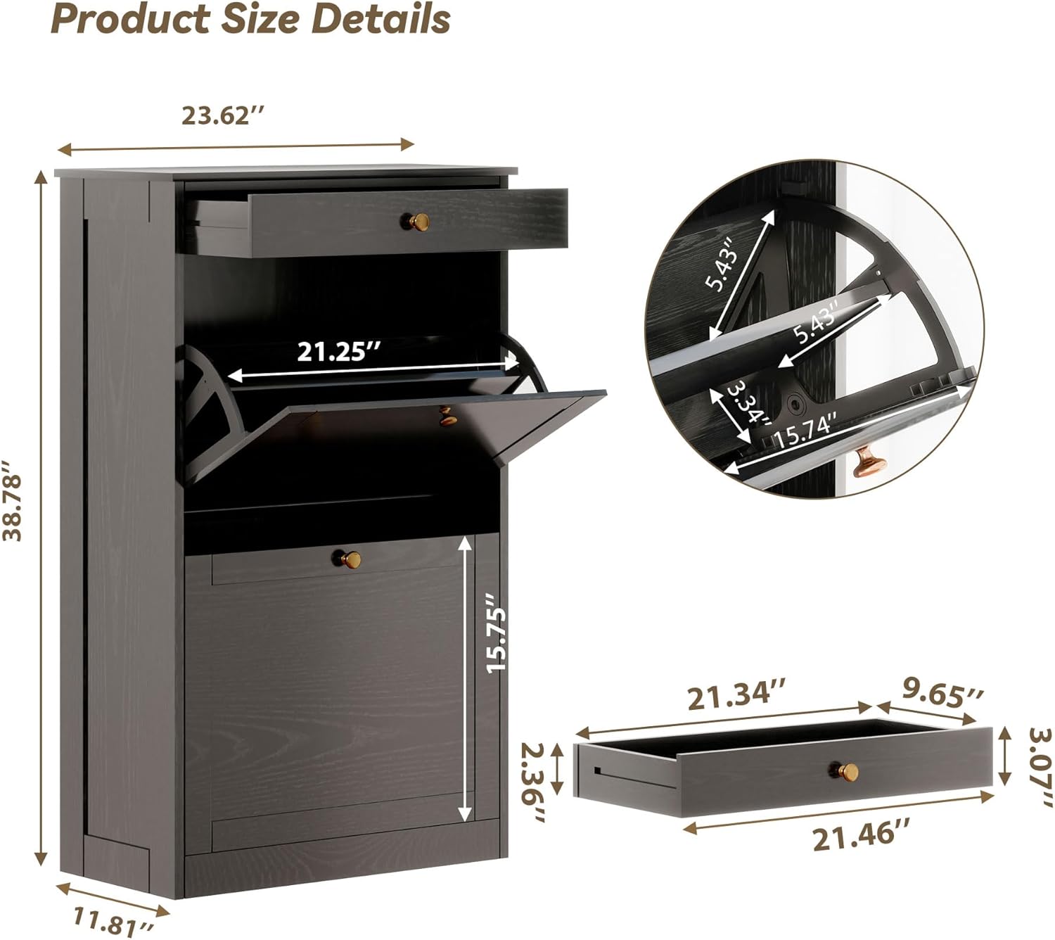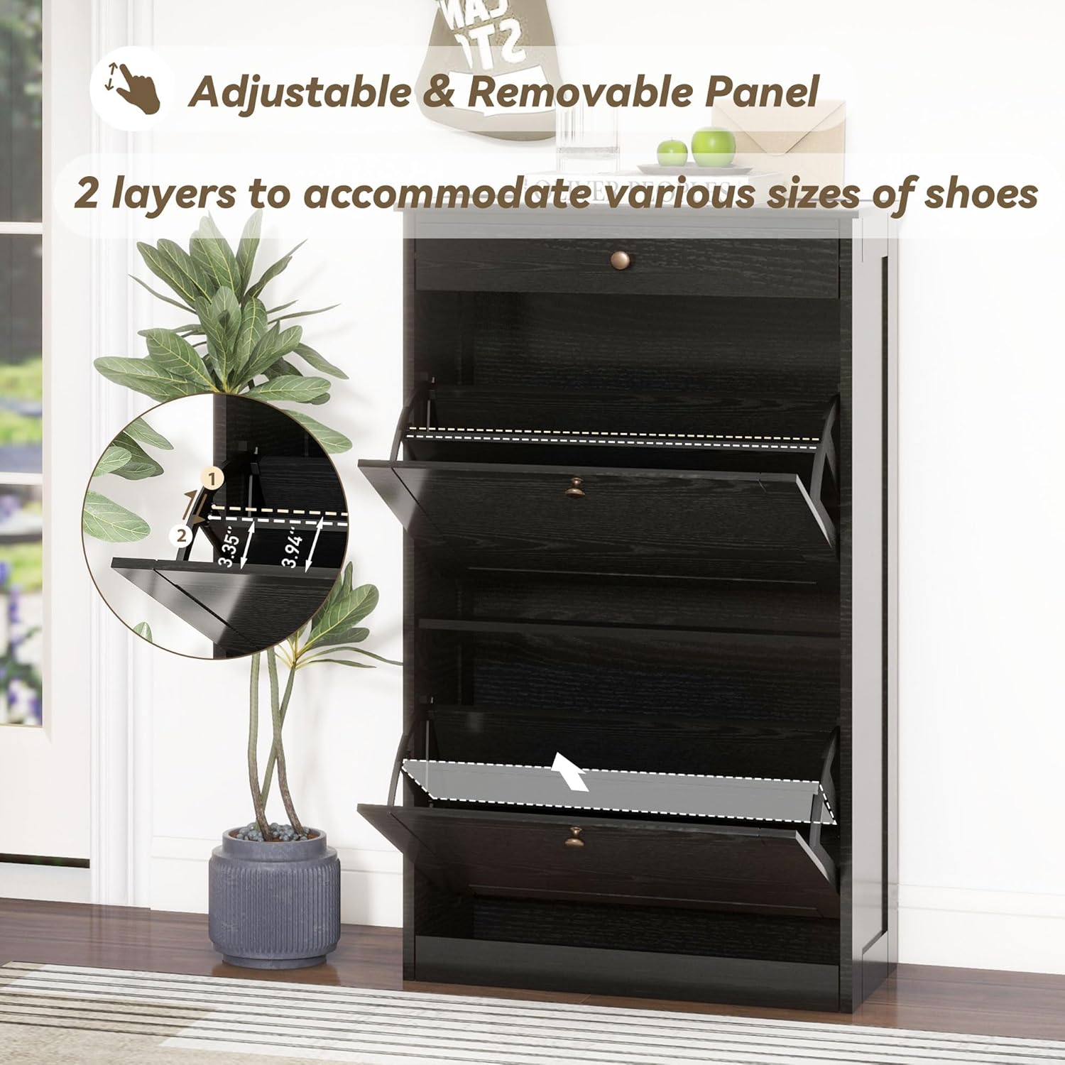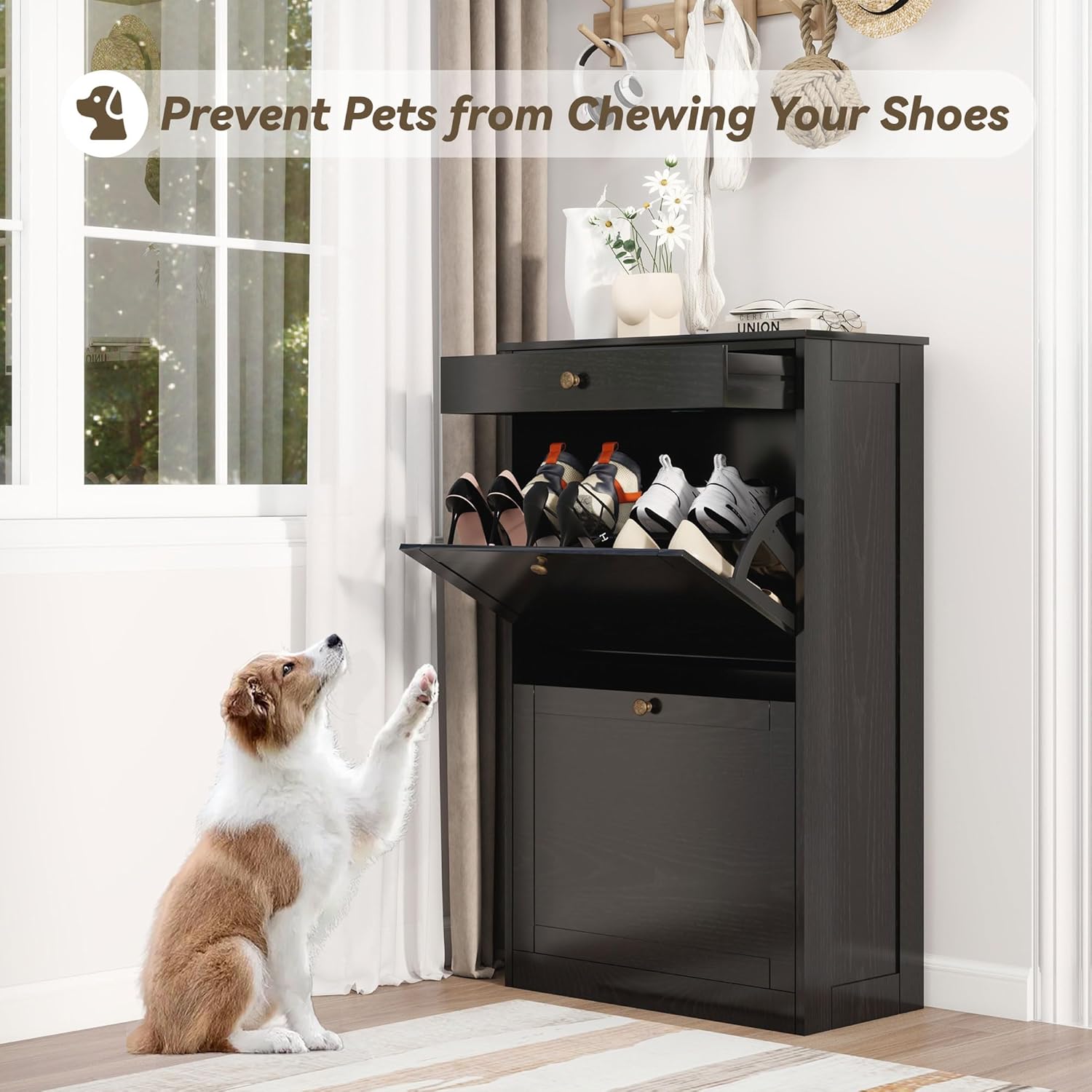 Shoe Cabinet with 2 Flip Drawers, Slim Freestanding Hidden Shoe Organizer with Drawer, Pet-Proof Shoe Storage Cabinet for Entryway Living Room Behind The Door, Black