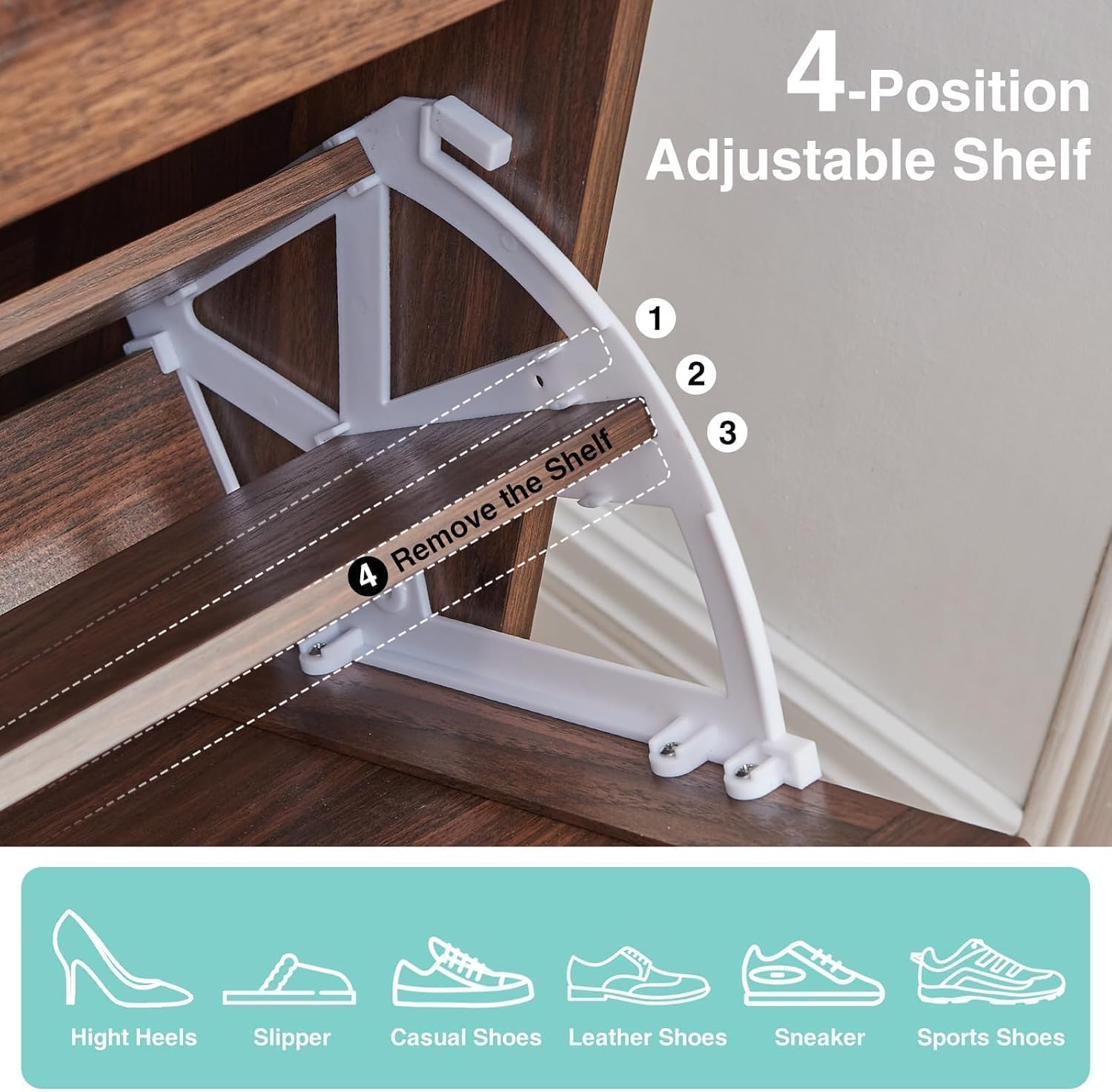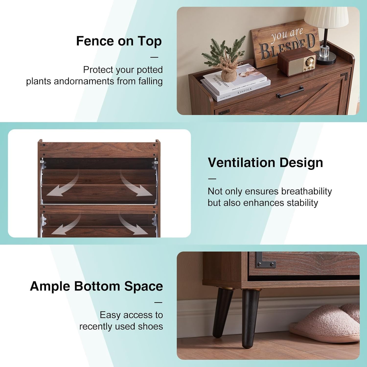 Shoe Storage Cabinet,Farmhouse Shoe Organizer with 2 Flip Drawers & Barn Door Design,Freestanding Hidden Slim Narrow Shoe Rack Cabinet for Entryway,Foyer,Hallway,Walnut